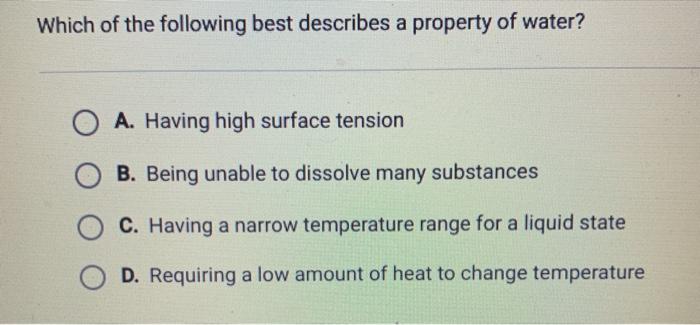 Solved Which Of The Following Best Describes A Property Of Chegg Com